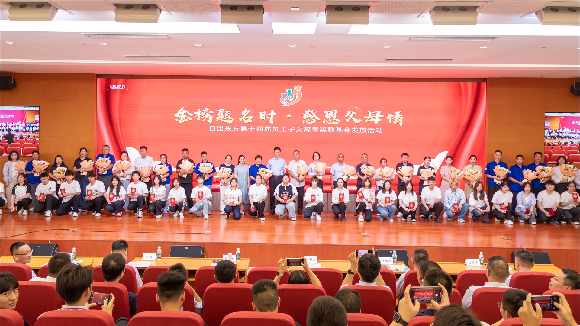 2025年8月26日,以“金榜题名时·感恩父母情”为主题的日出东方第十四届员工子女高考奖励基金发放仪式如期举行。本次活动采用 “一心三地双联动” 模式,连云港总部基地、余姚基地、顺德基地、洛阳基地,钉钉全员直播——总部、基地、营销市场一线紧密联动,共同分享员工子女金榜题名的喜悦,见证孝心与感恩的双向奔赴。
