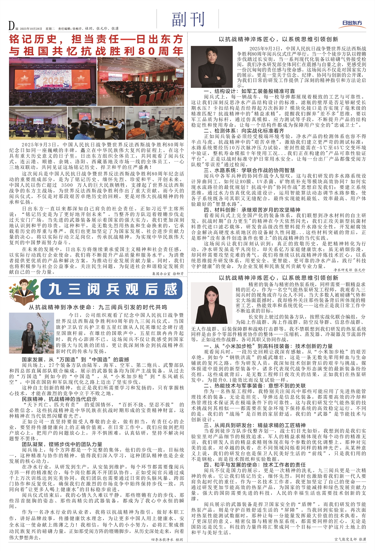 日出东方副刊 铭记历史,担当责任——日出东方与祖国共忆抗战胜利80周年 从抗战精神到净水使命:九三阅兵引发的时代共鸣 从抗战精神到净水使命:九三阅兵引发的时代共鸣 铁甲荣光与精密匠心